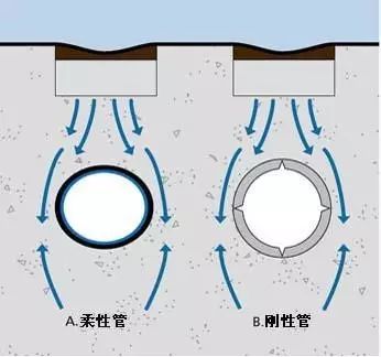 塑料管屬于柔性管,在受外壓負(fù)荷時(shí),柔性管和剛性管的承受負(fù)載的機(jī)理是全部不同的。柔性管在受壓破壞之前,可以有較大的變形,而剛性管在受外壓破壞之前不可能有較大變形。當(dāng)剛性管受外壓時(shí),負(fù)載全部經(jīng)過(guò)管材壁傳遞到底部的管床上,在管材壁內(nèi)產(chǎn)生彎矩,隨著管材直徑加大,管壁的彎矩和應(yīng)力急劇加大,所以大直徑的混凝土排水管常常需加鋼筋,而柔性管在受壓破壞前先變形----橫向外擴(kuò),管材周?chē)幕靥钔寥揽梢云鸬阶柚谷嵝怨茏冃魏屯鈹U(kuò)的作用,外壓負(fù)載就被傳遞和分?jǐn)偟街車(chē)幕靥钔林腥チ?。所以,在同樣外壓?fù)載下柔性管管壁內(nèi)的應(yīng)力較小,它和周?chē)幕靥钔凉餐惺茇?fù)載,管土共同作用。因此,塑料埋地排水管不需和剛性混凝土管一樣的強(qiáng)度和剛度,在合理的剛度下,是全部可以達(dá)到使用要求的,這一點(diǎn)已被歐洲發(fā)達(dá)的應(yīng)用實(shí)踐所證明。