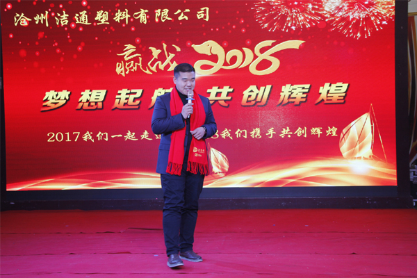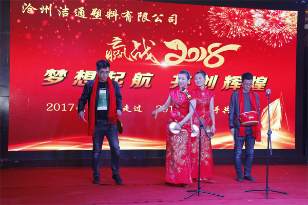冬去春回又一載,似水流年旺年來。2018年2月12日下午,滄州潔通塑料有限公司2017年年會(huì)在正達(dá)大西洋酒店隆重舉行。潔通公司全體員工歡聚一堂,在熱情、溫馨、歡樂的氣氛中回首2017年取得的成績(jī),共同迎接2018年的到來。